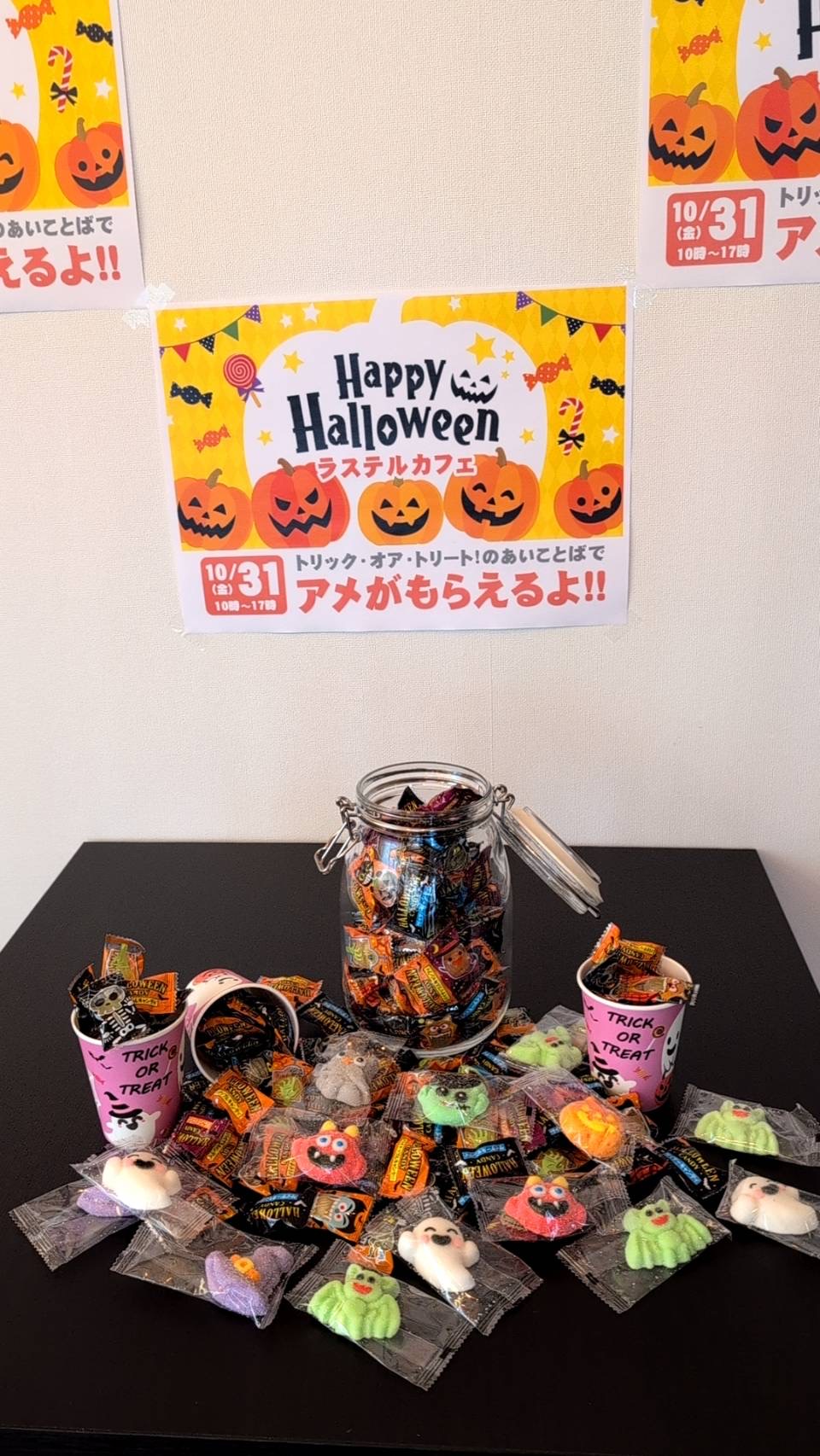 10月31日(金)、横浜市西区にある弊社運営のラステルカフェにて、初の試みとして「ハッピーハロウィン企画」を開催し、「トリック・オア・トリート!」を合言葉に、カフェに訪れた20名以上の子どもたちに、飴などのお菓子を配りました。